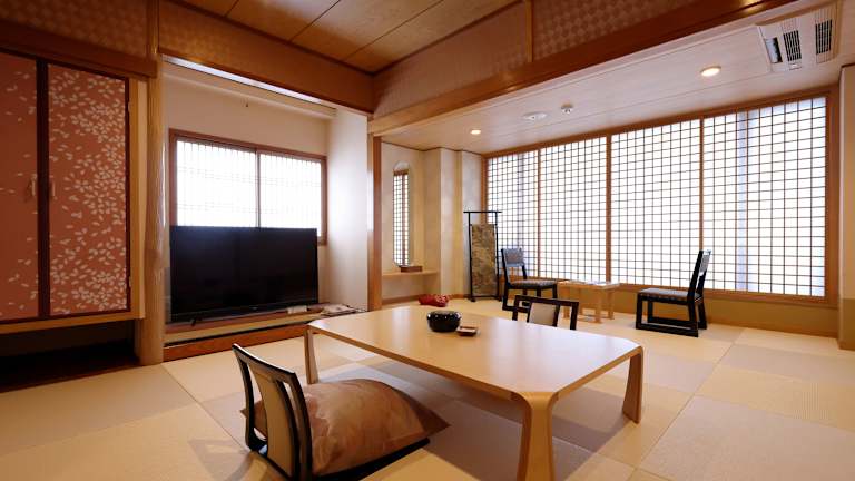 Das Hotel verfügt über 39 Zimmer, die mit einem Aufzug erreichbar sind. Jedes Zimmer ist im traditionell japanischen Stil eingerichtet und bietet seinen Gästen eine Klimaanlage, einen Balkon oder eine Terrasse sowie kostenpflichtige Klimaanlage und Zimmerservice. Zur Ausstattung gehören auch ein Safe, ein Kühlschrank, ein Telefon und kostenfreies WLAN. Die Badezimmer verfügen über ein Bidet und kostenlose Kosmetikartikel.