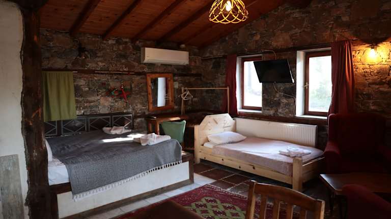 Das Hotel Kayserkaya Bungalows liegt im ruhigen Dorf Sirince, nur 150 Meter vom Kayserkaya Berg entfernt. Die Umgebung bietet eine idyllische Kulisse, um dem Alltagsstress zu entfliehen und sich zu erholen. In der Nähe befinden sich öffentliche Verkehrsmittel, die den Gästen einen einfachen Zugang zu Selcuk ermöglichen, wo sie eine Vielzahl von Restaurants, Bars und Sehenswürdigkeiten wie die St. Johannes-Basilika finden können. Die antike Stadt Ephesus liegt 10 km entfernt, während der Strand von Pamucak, das Haus der Jungfrau Maria und das Camlik Zug Museum alle innerhalb von 16 km erreichbar sind.