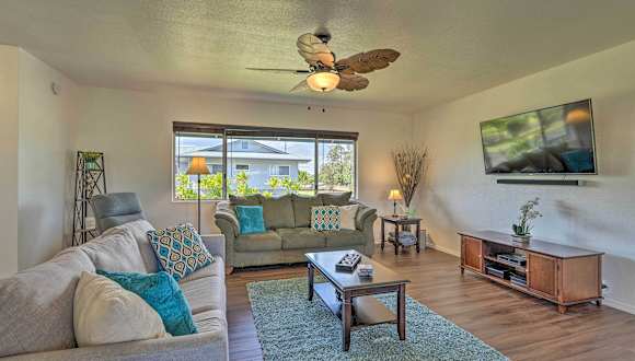 Verbringen Sie Ihren Aufenthalt im Keaau Home - 34 Mi to Volcanoes NP, near Hilo und genießen Sie die Nähe zu verschiedenen Sehenswürdigkeiten wie dem Pana'ewa Rainforest Zoo und dem Pacific Tsunami Museum. Das Ferienhaus bietet Ihnen drei Schlafzimmer, eine voll ausgestattete Küche und kostenfreies WLAN. Erkunden Sie die Umgebung und besuchen Sie das Lyman Museum & Mission House oder die Rainbow Falls. Der internationale Flughafen Hilo ist ebenfalls in der Nähe.