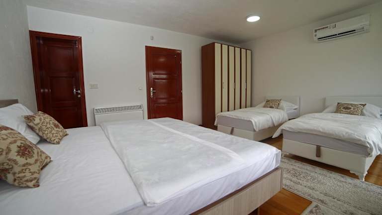 Das Keep calm Lake edition in Konjic ist eine Villa, die mit einem Garten, einer Terrasse und einem eigenen Strandbereich eine idyllische und entspannende Atmosphäre bietet. Das kostenfreie WLAN und der Seeblick sorgen für zusätzlichen Komfort und Genuss. Die Villa verfügt über Privatparkplätze und bietet eine Vielzahl von Aktivitäten wie Tauchen, Angeln und Radfahren in der Umgebung an. Die klimatisierte Villa bietet Platz für bis zu 4 Personen und verfügt über 2 Schlafzimmer, ein Wohnzimmer, eine voll ausgestattete Küche und 4 Badezimmer. Ein Flachbild-TV und ein CD-Player sind ebenfalls vorhanden. Grillmöglichkeiten stehen zur Verfügung und es gibt auch einen Fahrradverleih und eine Autovermietung. Der internationale Flughafen Sarajevo ist ca. 65 km entfernt und ein kostenpflichtiger Flughafentransfer wird angeboten.