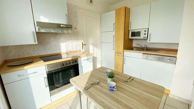 Die Unterkunft beinhaltet eine Küche mit einem Kühlschrank, einem Geschirrspüler und einer Kaffeemaschine. Gäste haben die Möglichkeit, Handtücher und Bettwäsche gegen Aufpreis zu mieten. Weitere Verpflegungsmöglichkeiten sind nicht beschrieben.