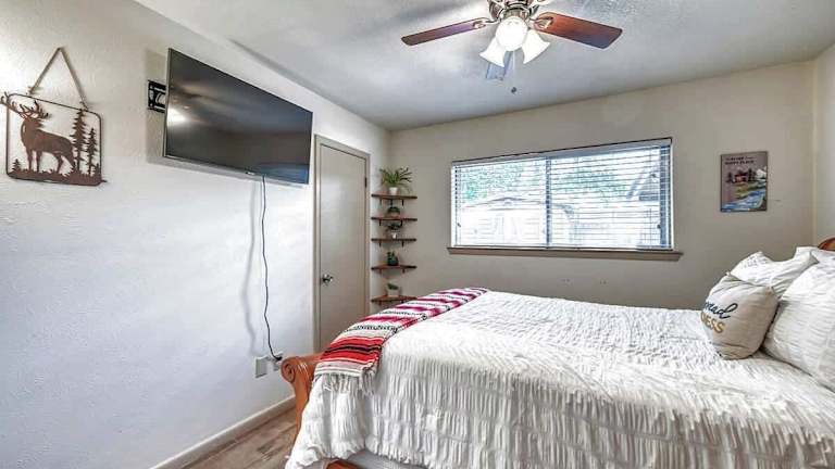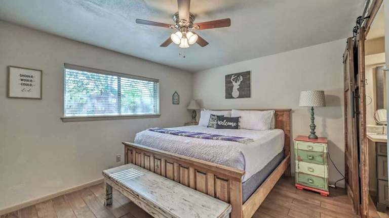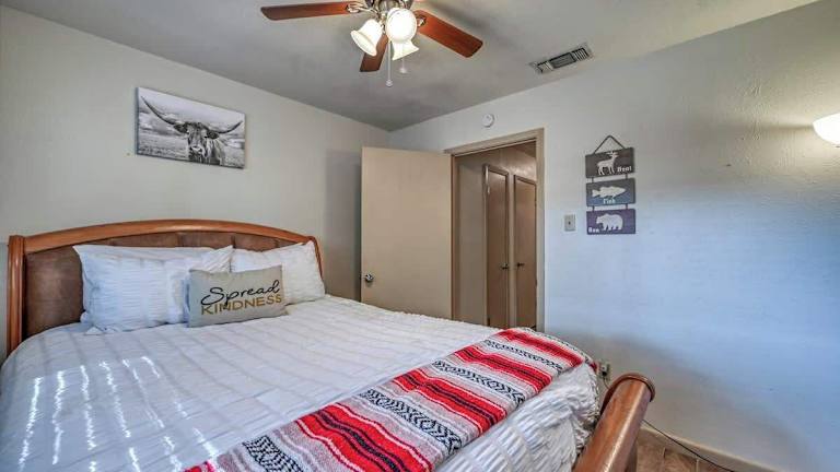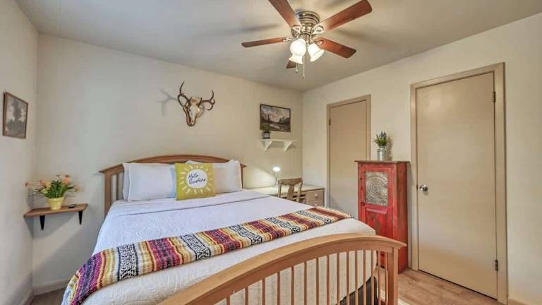 Das Kerrville Hidden Gem Firepit and Grill Great Location in Kerrville ist eine ideale Unterkunft für Reisende, die nach einem komfortablen und gut ausgestatteten Ferienhaus suchen. Mit klimatisierten Zimmern, einem schönen Balkon und kostenfreiem WLAN bietet dieses Ferienhaus alles, was Sie für einen angenehmen Aufenthalt benötigen. Das Haus verfügt über 4 Schlafzimmer, eine voll ausgestattete Küche und 2 Badezimmer. Der Garten und die kostenfreien Privatparkplätze sind weitere Annehmlichkeiten, die den Aufenthalt noch angenehmer machen. Genießen Sie die Möglichkeit zum Radfahren in der Umgebung und erkunden Sie die schöne Natur. Der internationale Flughafen San Antonio liegt nur 99 km entfernt und ist bequem zu erreichen.