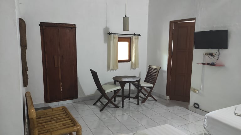 Die Zimmer im Keyani's Bungalow sind geschmackvoll eingerichtet und bieten eine einzigartige balinesische Atmosphäre. Sie können zwischen klimatisierten oder mit Ventilator gekühlten Zimmern wählen. Jedes Zimmer verfügt über Sat-TV, eine gemütliche Sitzecke mit Schreibtisch und eine Minibar. Das private Badezimmer ist mit einer Dusche und kostenfreien Pflegeprodukten ausgestattet. Eine Terrasse bietet einen herrlichen Blick auf den üppigen tropischen Garten.