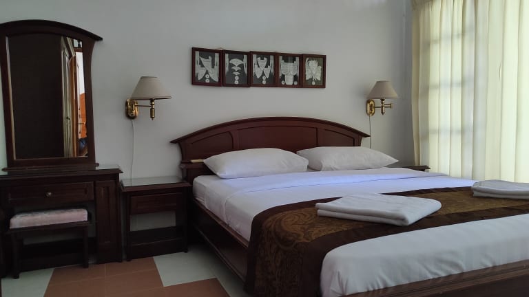 Der Keyani's Bungalow in Lovina ist eine gemütliche Unterkunft inmitten der schönen Küstenlandschaft. Mit seiner einzigartigen traditionellen balinesischen Einrichtung, einem Außenpool und kostenfreiem WLAN bietet das Hotel einen angenehmen Aufenthalt. Der Strand von Lovina ist nur einen kurzen Spaziergang entfernt und die heißen Quellen von Banjar sind in 30 Minuten mit dem Auto erreichbar. Die Zimmer sind komfortabel eingerichtet und verfügen über Annehmlichkeiten wie Sat-TV, eine Sitzecke und eine Minibar. Eine Terrasse bietet einen schönen Blick auf den üppigen tropischen Garten. Weitere Annehmlichkeiten wie Privatparkplätze, eine Gemeinschaftslounge und eine Küche stehen den Gästen zur Verfügung. Ein einfaches Frühstück wird im gemeinsamen Speisesaal serviert.