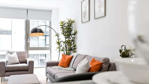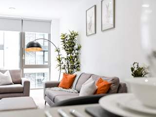 Khayat Homes - The Owelor - Two Bed bietet eine moderne Unterkunft mit kostenlosem WLAN und Privatparkplätzen an. Die Ausstattung umfasst einen Balkon und einen Sitzbereich sowie einen Flachbild-TV und eine voll ausgestattete Küche.