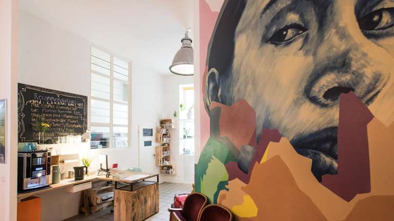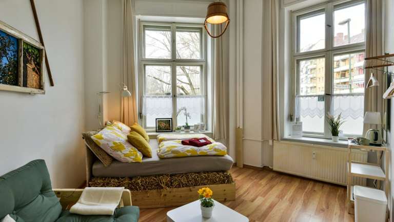 Im Kiez Hostel Berlin sind sowohl Doppelzimmer als auch Schlafsäle vorhanden. In einigen Doppelzimmern stehen Zustellbetten zur Verfügung. Jedes Zimmer ist individuell gestaltet und spiegelt ein bestimmtes Thema wider, welches es einzigartig macht.