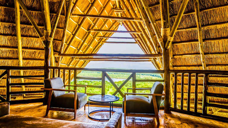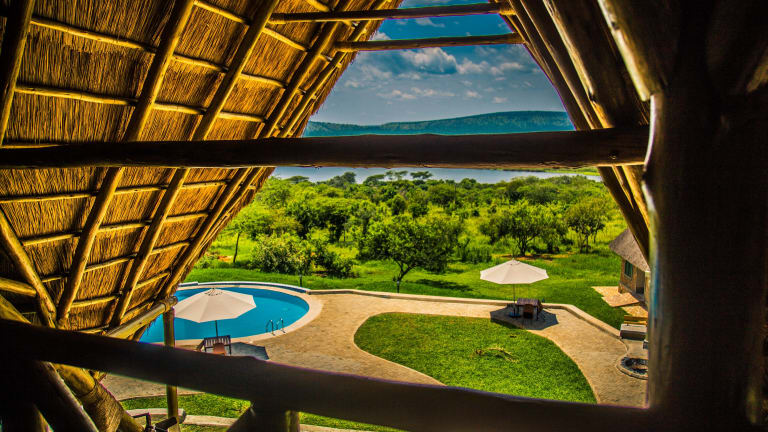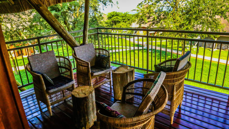 Jedes Zimmer in der Kigambira Safari Lodge ist mit einem Balkon ausgestattet.