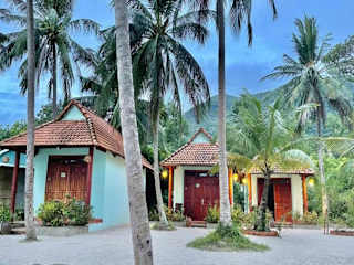Die Unterkünfte im Kiki Coconut Beach Resort sind komfortable Bungalows, die eine entspannte Atmosphäre bieten. Jeder Bungalow verfügt über eine Terrasse, auf der Sie den Meerblick und die frische Meeresbrise genießen können. Die Zimmer sind mit einem Kleiderschrank ausgestattet und jedes verfügt über ein eigenes Badezimmer mit Handtüchern und einer Dusche.