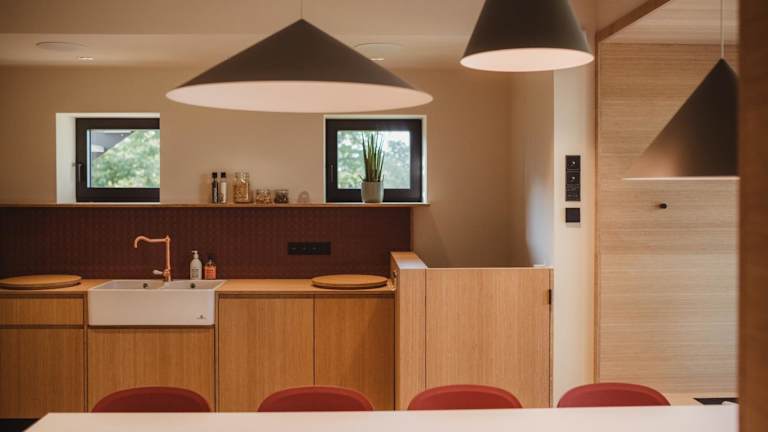 Die Unterkunft verfügt über eine Gemeinschaftsküche, die mit einem Kühlschrank, einem Geschirrspüler und einem Ofen ausgestattet ist. Essensmöglichkeiten sind im Ferienhaus integriert.