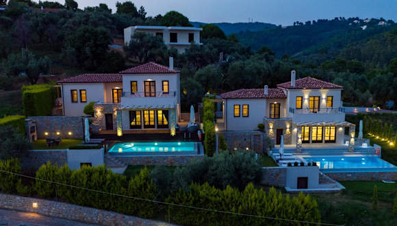 Die King Size Villas befinden sich weniger als 600 m vom Strand Kolios und 1 km vom Strand Agia Paraskevi entfernt. Die Villa ist 1,7 km vom Strand Vromolimnos und etwa 6,7 km vom Hafen Skiathos entfernt. Der nächstgelegene Flughafen, der Flughafen Skiathos, liegt in einer Entfernung von 9 km.