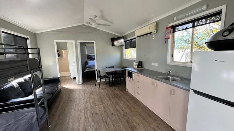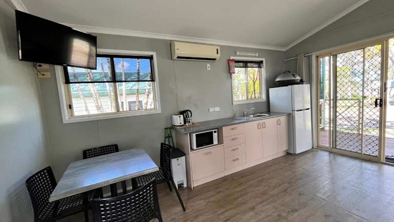 Die Unterkünfte im Kingfisher Caravan Park sind klimatisiert und bieten einen Balkon, einen gemütlichen Sitzbereich und einen separaten Essbereich. Die Küchenzeile ist mit allen notwendigen Geräten wie Mikrowelle, Toaster, Kühlschrank, Kochfeld und Wasserkocher ausgestattet. Bettwäsche und Handtücher werden gestellt, um Ihnen einen angenehmen Aufenthalt zu ermöglichen.