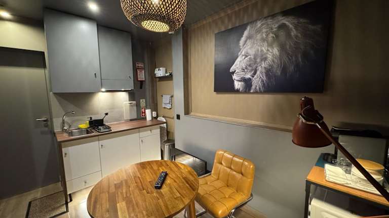Die Ferienwohnung umfasst ein Schlafzimmer, einen Flachbild-TV und eine gut ausgestattete Küchenzeile mit Kühlschrank und Mikrowelle. Zudem gibt es ein Badezimmer mit Badewanne oder Dusche. Handtücher und Bettwäsche werden zur Verfügung gestellt.