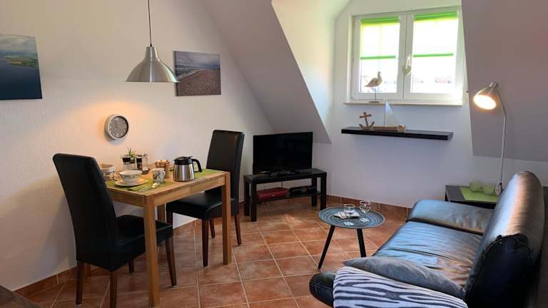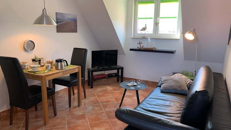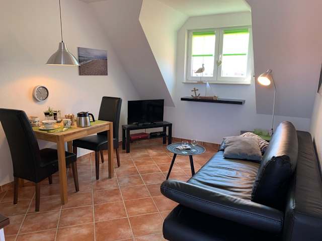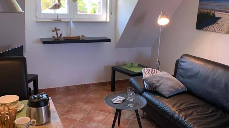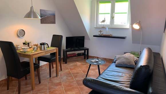 Die Ferienwohnung Ostseeblick bietet eine komfortable Übernachtungsmöglichkeit mit Meerblick. Die Ausstattung umfasst einen Balkon sowie Annehmlichkeiten wie einen Wasserkocher.
