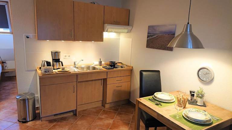 Die Ferienwohnung verfügt über 1 Schlafzimmer und ist ausgestattet mit Satellitenfernsehen, einem Essbereich sowie einer Küche, die mit einem Kühlschrank und einem Geschirrspüler ausgestattet ist.