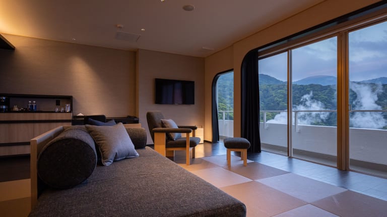 Die Zimmer sind mit mehreren Annehmlichkeiten ausgestattet, darunter Klimaanlage, Heizung, ein Kühlschrank und ein Flachbild-TV. Zudem verfügen die Räume über ein gemütliches Doppelbett sowie ein Badezimmer mit Bidet und Kosmetikartikeln. WLAN ist in den Zimmern kostenlos verfügbar, und Hausschuhe gehören ebenfalls zur Ausstattung. Einige Zimmer bieten einen schönen Blick auf die umliegenden Berge oder Sakurajima.