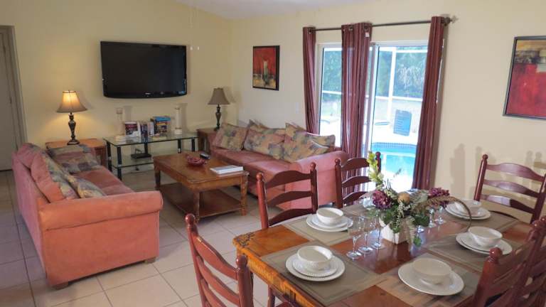 Das Kissimmee Area Pool Home befindet sich im Stadtteil Celebration von Orlando, einer charmanten Gemeinde mit einer idyllischen Atmosphäre. Sie können die Nähe zu den beliebten Attraktionen der Gegend genießen und gleichzeitig in einer ruhigen Umgebung entspannen. Der internationale Flughafen Orlando ist nur 32 km entfernt, was eine bequeme Anreise ermöglicht.