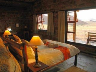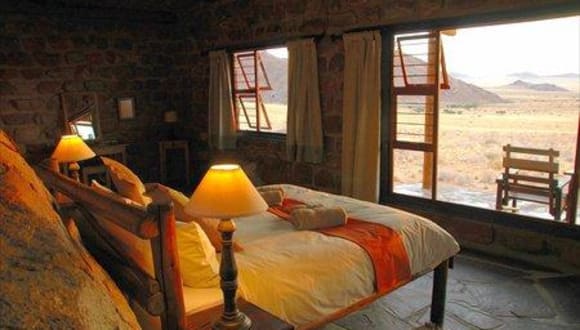 Einsamkeit, Weite, Stille und prächtige Sonnenuntergänge – das ist das Ambiente der Eagle’s Nest Chalets, 15 Autominuten vom Empfang entfernt. Jedes der acht Chalets ist aus Naturstein um einen mächtigen Granitfels gebaut und mit Bad, Kochnische, Kamin und privater Veranda ausgestattet. Mahlzeiten werden im Restaurant des Desert Horse Inn serviert.