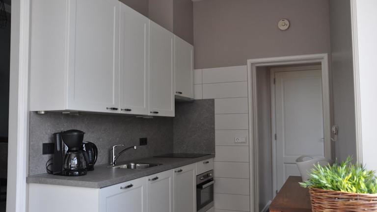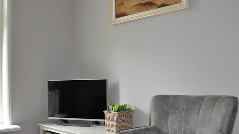 Die voll ausgestattete Küche umfasst einen Kühlschrank, Geschirrspüler, Ofen, Mikrowelle, Herdplatte, Kaffeemaschine und Wasserkocher, sodass Gäste ihre eigenen Mahlzeiten zubereiten können.