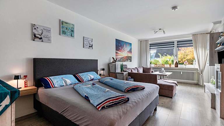 Die Ferienwohnung besteht aus einem Schlafzimmer, einem Wohnzimmer und einem Badezimmer mit Dusche und kostenlosen Pflegeprodukten. Handtücher und Bettwäsche werden bereitgestellt. Die Unterkunft ist für bis zu zwei Gäste geeignet.