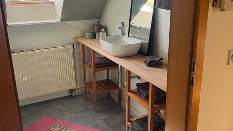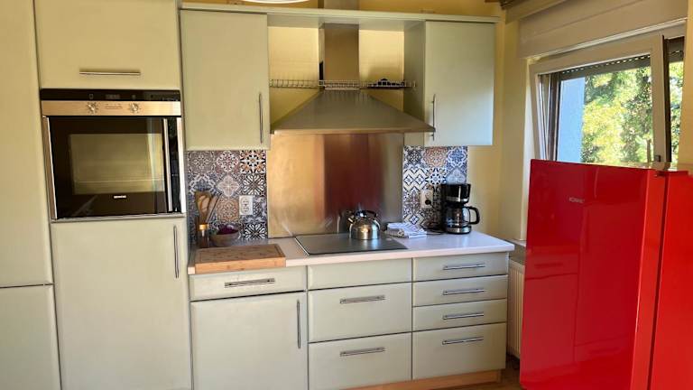 Die Ferienwohnung ist ausgestattet mit Bettwäsche, Handtüchern, einem Flachbild-TV mit Satellitenkanälen, einer voll ausgestatteten Küche sowie einem Balkon mit Gartenblick.