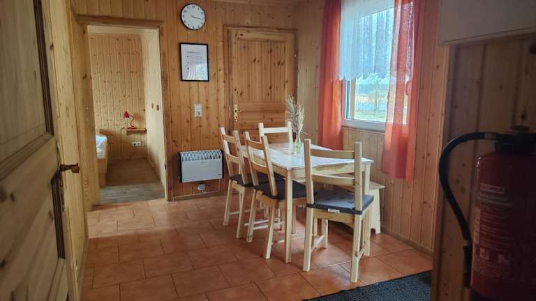 Das Ferienhaus verfügt über zwei Schlafzimmer, ein Wohnzimmer mit Satelliten-TV und eine gut ausgestattete Küchenzeile. Es gibt ein Badezimmer mit Dusche.