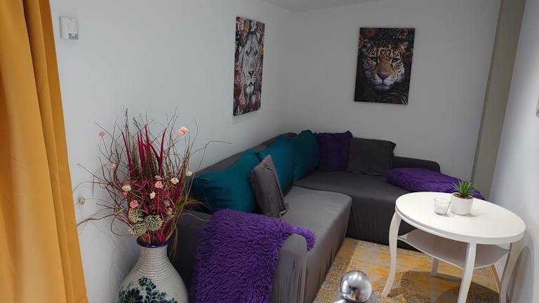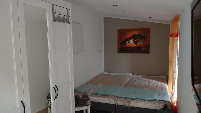 Die Kleine gemütliche Ferienwohnung im Tiny House Stil bietet eine entspannte Unterkunft in einem ruhigen Hinterhof. Die Ferienwohnung zeichnet sich durch eine Terrasse mit Gartenblick aus und verfügt über ein Schlafzimmer sowie ein Wohnzimmer.