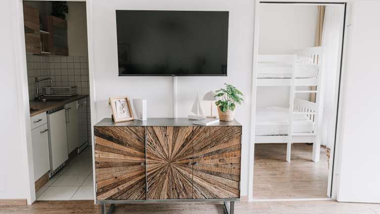 Die Ferienwohnung verfügt über 2 Schlafzimmer, ein Badezimmer, sowie über Bettwäsche und Handtücher. Des Weiteren sind ein Flachbild-TV mit Satellitenkanälen, ein Essbereich, eine voll ausgestattete Küche und ein Balkon mit Seeblick vorhanden.