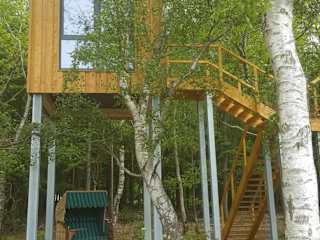 Das Kleines Baumhaus für Zwei ist eine außergewöhnliche Unterkunft in Nordholz, umgeben von einem Garten, der eine Terrasse und einen Blick auf den See bietet. Die Ausstattung umfasst kostenloses WLAN.