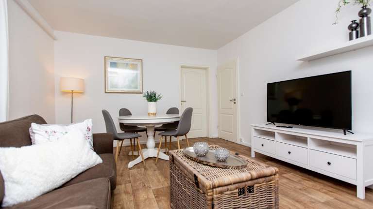 Die Ferienwohnung verfügt über zwei Schlafzimmer, einen Flachbild-TV und eine voll ausgestattete Küche. Diese ist mit einem Kühlschrank, Geschirrspüler, Waschmaschine, Ofen und Herdplatte ausgestattet. Die Unterkunft ist eine Nichtraucherunterkunft.