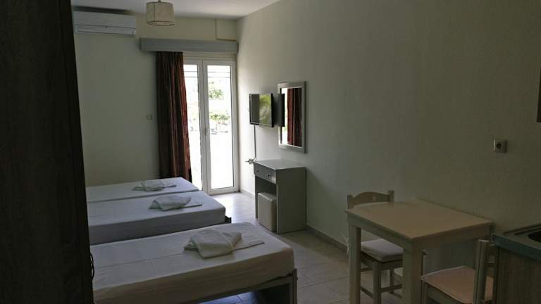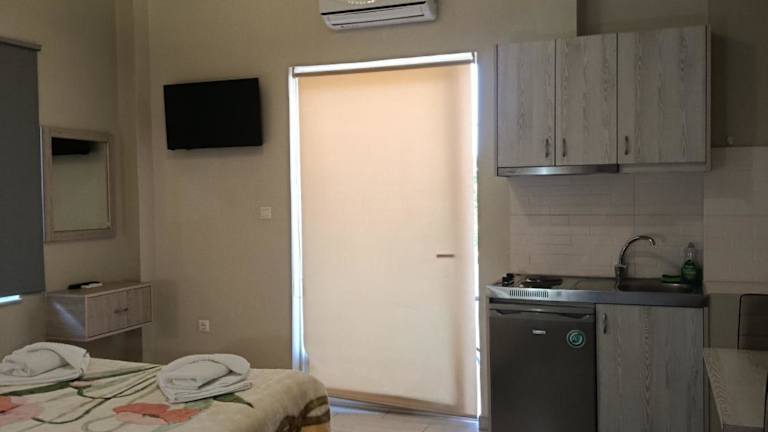 Die Studios im Hotel Kleri Beloni Rooms verfügen alle über eine Küchenzeile, so dass Sie sich bequem selbst verpflegen können. Jedes Studio hat ein eigenes Badezimmer mit Dusche. Die Zimmer sind gemütlich und bieten alles, was Sie für einen angenehmen Aufenthalt benötigen.