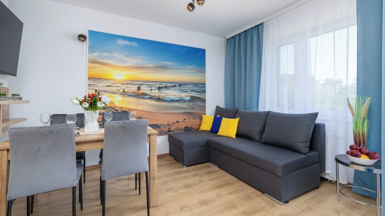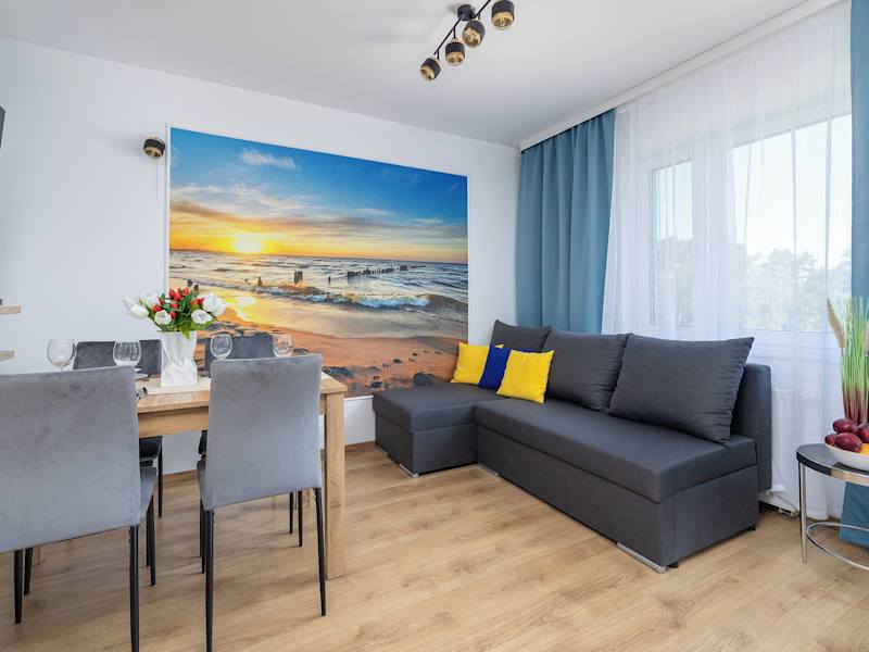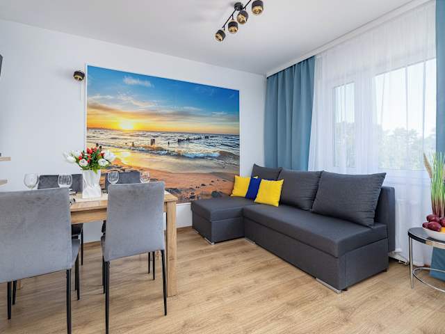 Klimaty Bałtyku Pod linami ul Daglezji 93 Dziwnów bietet eine Übernachtungsmöglichkeit mit Gartenblick, Balkonen und einer privaten Parkmöglichkeit im Freien. Die Ferienwohnung ist mit einem Sitzbereich und einem Flachbild-TV eingerichtet.