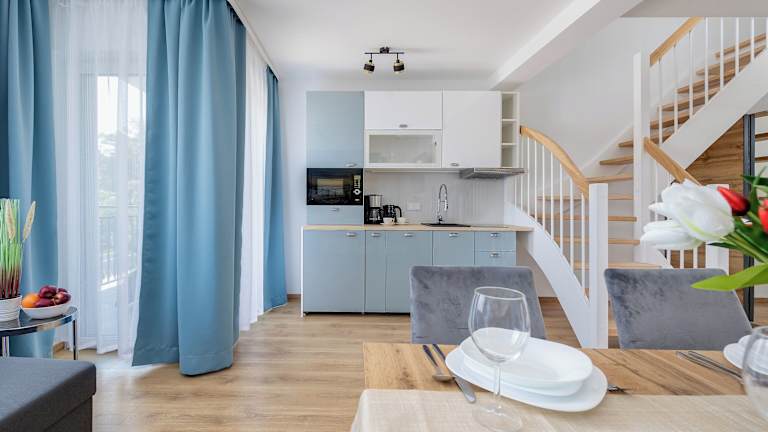 Die Unterkunft befindet sich in Dziwnów, etwa 2,3 km vom Oststrand Dziwnów sowie 1 km vom Strand Miedzywodzie entfernt. Der zentrale Strand Dziwnów ist 2,5 km entfernt. Die Umgebung bietet Möglichkeiten für Fahrradtouren. Der Bahnhof Swinemünde liegt 39 km entfernt.