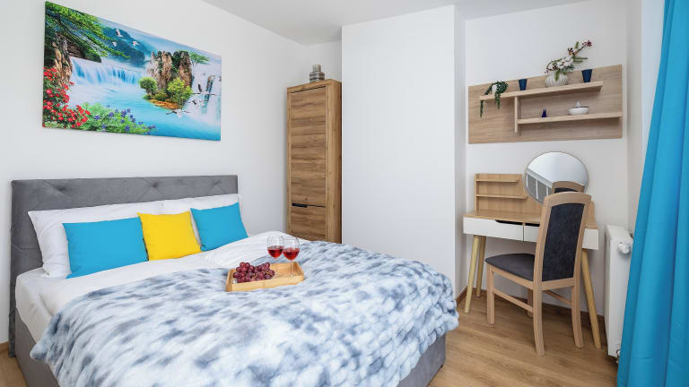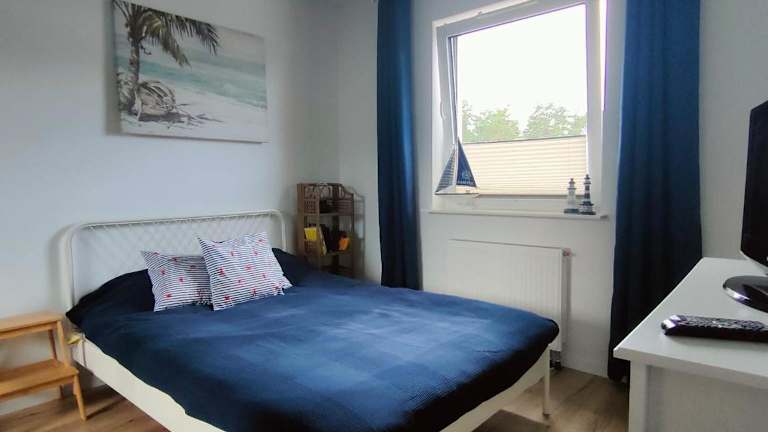 Die Ferienwohnung verfügt über 2 Schlafzimmer, eine Küchenzeile mit Kühlschrank und Geschirrspüler, ein Badezimmer mit Dusche und bietet Handtücher sowie Bettwäsche.