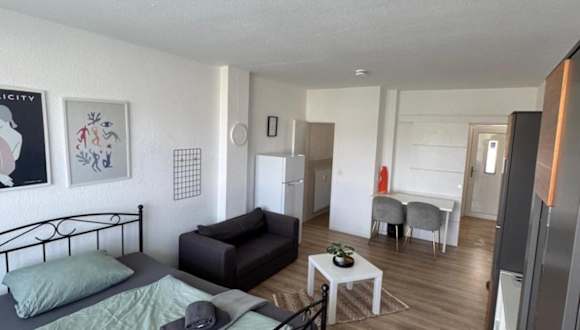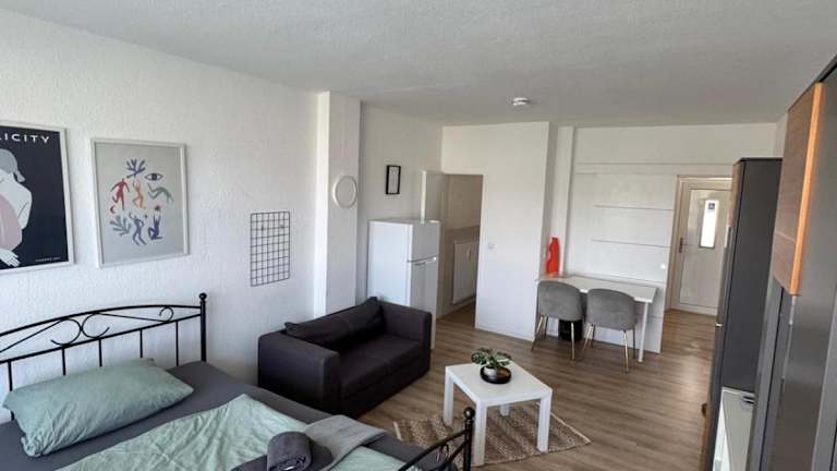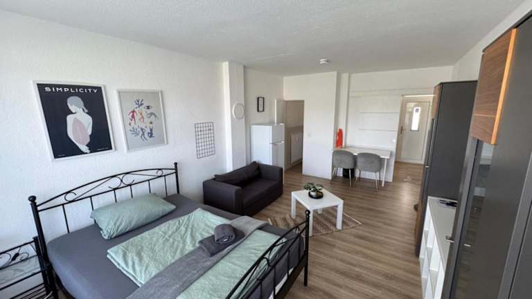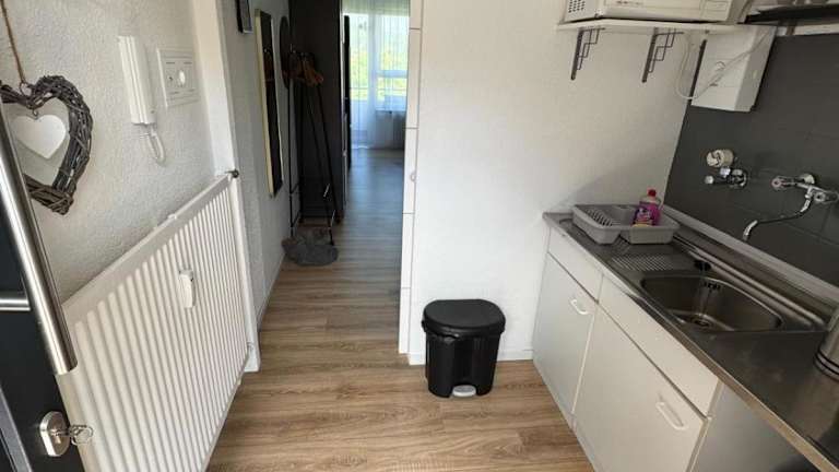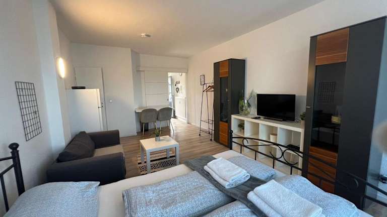 Die Ferienwohnung bietet ein Schlafzimmer und eine gut ausgestattete Küche mit Kühlschrank und Ofen. Zur weiteren Ausstattung gehören ein Flachbild-TV, ein Sitzbereich und ein Badezimmer mit Dusche. Handtücher und Bettwäsche werden bereitgestellt.