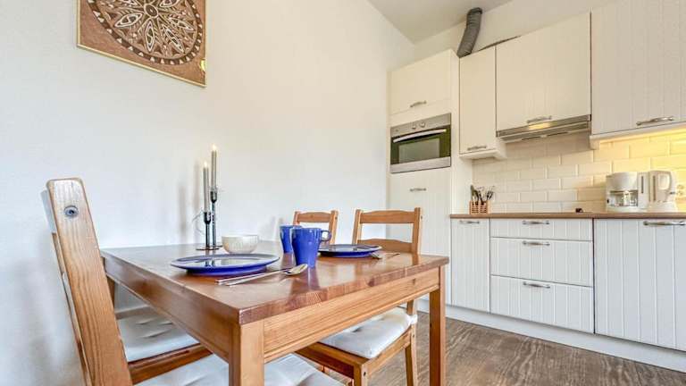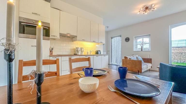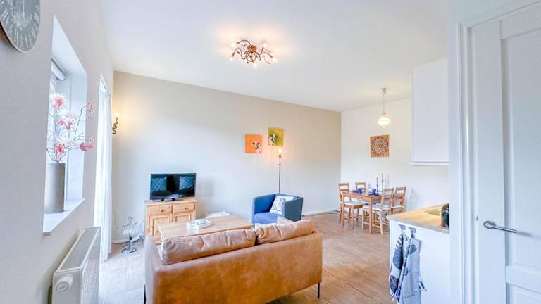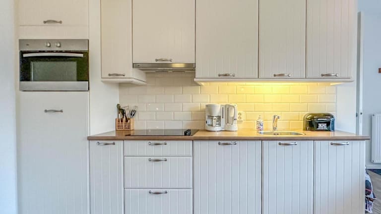Die Ferienwohnung besteht aus einem Schlafzimmer, einem Wohnzimmer und einer voll ausgestatteten Küche, die mit einem Kühlschrank und einer Kaffeemaschine ausgestattet ist. Zudem verfügt die Unterkunft über ein Badezimmer mit Dusche. Handtücher und Bettwäsche werden bereitgestellt.