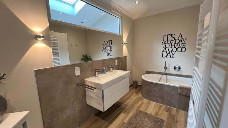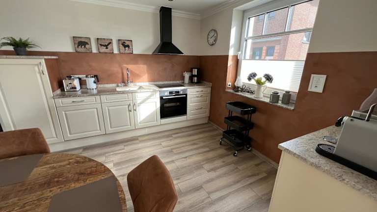 Die Apartments im Königsgut Emmericher Eyland sind geräumig und komfortabel eingerichtet. Jedes Apartment verfügt über einen separaten Sitzbereich, einen Flachbild-Sat-TV und eine voll ausgestattete Küche mit Kühlschrank, Geschirrspüler, Backofen, Mikrowelle, Kochfeld, Kaffeemaschine und Wasserkocher. Das private Badezimmer ist mit einer Dusche und einem Haartrockner ausgestattet. Von der Terrasse aus können die Gäste den Blick auf den Garten genießen.