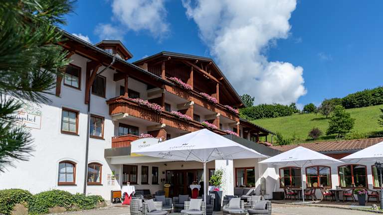 Am 20.01.2025 hat unser 4 Sterne superior Königshof Hotel Resort nach Renovierung und Betreiberwechsel wieder seine Türen geöffnet. Wir freuen uns, wenn wir Sie bald bei uns begrüßen dürften. Gerne bereiten wir Ihnen eine wunderbare Auszeit im Allgäu und überzeugen Sie von unserer wiedergewonnenen Qualität. Gäste sind bei uns ab 14 Jahren willkommen – Adults only. Das Königshof Hotel Resort liegt im Ortsteil Weissach, unterhalb von Oberstaufen, in den Allgäuer Alpen und bietet einen atemberaubenden Blick Richtung Süden auf die Nagelfluhkette mit dem Hochgrat. Die Ortsmitte liegt ca. 2,5 km entfernt. Die 106 Zimmer des Königshof Hotel Resort sind komfortabel ausgestattet und verfügen teilweise über einen Balkon oder eine Terrasse – mit perfektem Hochgratblick. Das kulinarische Angebot des Hotels umfasst das Menü Restaurant „Vier Stuben“ sowie das Restaurant „Königshof“. Bei Buchung der Verwöhnpension haben Sie täglich die Möglichkeit zwischen einem regionalen Buffet und einem 5-Gang-Menü zu wählen. Für die abendliche Unterhaltung sorgt unsere Abendbar von Dienstag – Samstag mit Live-Musik. Zwei separate Wellnessbereiche, auf insgesamt 2.500m², laden zum Entspannen und Genießen ein. Besonders hervorzuheben ist die exklusive Wellnesslounge im „SPA Großes Felsengewölbe“. Dort befinden sich neben einer einzigartigen Sauna mit großer Glasfront, zwei Panorama-Außensaunen mit Duschbereich im Saunagarten. Des Weiteren stehen Ihnen zwei Süßwasserpools, eine weitere Sauna und ein Dampfbad in der Wellnesswelt „Kleiner Königshof“ zur Verfügung. Das SPA Team verwöhnt Sie auf Wunsch mit Wellness- und Kosmetikanwendungen sowie Massagen. Auch Ihre Tagung oder Veranstaltung können Sie im schönen Allgäu verbringen. Ihnen stehen im Königshof Hotel-Resort Oberstaufen fünf flexible Tagungsräume zur Verfügung, die teilweise kombiniert werden können und bis zu 140 Personen Platz bieten.