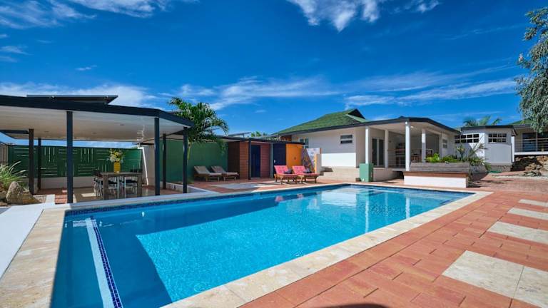 Die Unterkunft Koeriboeri Aruba Lodges bietet einen ganzjährig geöffneten Außenpool und eine Vielzahl an modernen Annehmlichkeiten. Zu den Ausstattungsmerkmalen gehören kostenloses WLAN und ein Privatparkplatz für Gäste. Die Lodges werden von einem privaten Gastgeber betrieben und bieten eine Nichtraucherumgebung. Die Mindestalter für den Check-in beträgt 18 Jahre, während das Mindestalter für Gäste 12 Jahre beträgt. Haustiere sind nicht gestattet.