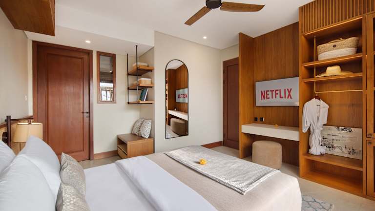 Die Zimmer der Kolila Villa Seminyak by Ini Vie Hospitality sind mit einem Balkon mit Poolblick, einem Sitzbereich, einem Flachbild-TV und einer voll ausgestatteten Küche ausgestattet. Dies beinhaltet einen Kühlschrank, eine Mikrowelle und ein eigenes Badezimmer mit Bidet, kostenlosen Pflegeprodukten, einer Dusche und einem Haartrockner.