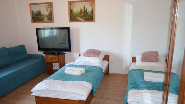 Die Unterkünfte im Kolorowy Domek bieten Komfort und Bequemlichkeit. Jede Wohneinheit verfügt über ein Schlafsofa, einen Flachbild-Sat-TV und eine gut ausgestattete Küchenzeile. Das private Badezimmer ist mit einer Dusche ausgestattet. Zusätzlich stehen ein Toaster und ein Wasserkocher zur Verfügung.