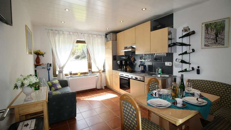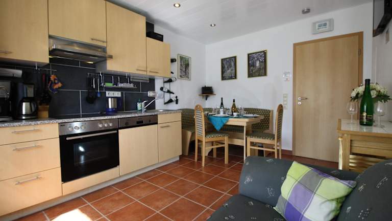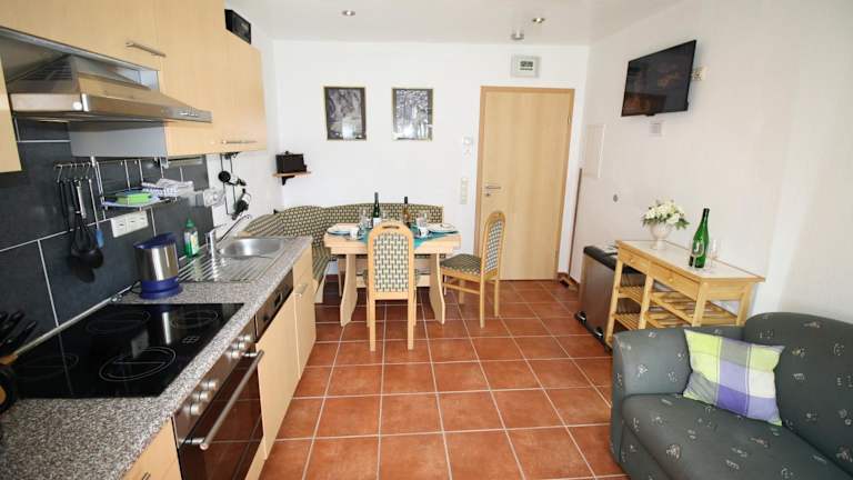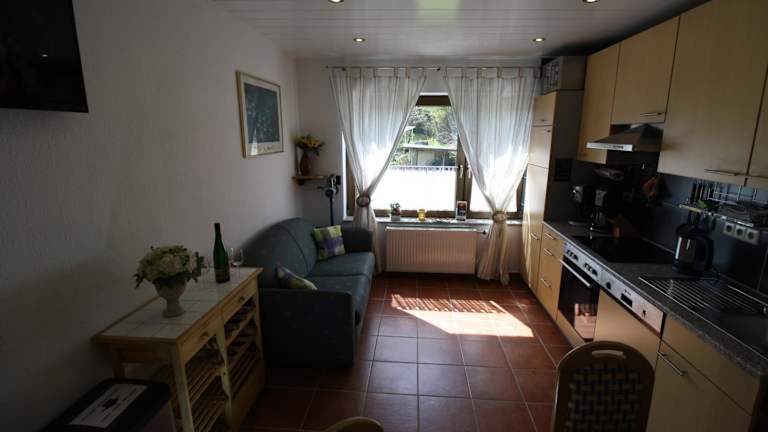Die Ferienwohnung FEWO74-1 bietet ein komfortables und gemütliches Ambiente. Das Apartment verfügt über ein Schlafzimmer, ein Wohnzimmer und eine gut ausgestattete Küche mit Kühlschrank und Backofen. Ein Flachbild-TV sorgt für Unterhaltung. Das Badezimmer ist mit einer Dusche ausgestattet. Handtücher und Bettwäsche werden gestellt. Von der Terrasse aus haben Sie einen herrlichen Blick auf die Stadt.