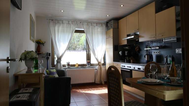 Die Komfort Ferienwohnung FEWO74-1 befindet sich in einer malerischen Umgebung, etwa 19 km von der Reichsburg Cochem entfernt. Sie bietet einen herrlichen Blick auf die umliegenden Berge. In der Nähe gibt es zahlreiche Aktivitäten wie Wandern, Radfahren und Darts, die Ihnen einen abwechslungsreichen Aufenthalt bieten. Der Nürburgring ist 45 km entfernt und die Burg Eltz erreichen Sie nach 49 km. Der Flughafen Frankfurt-Hahn ist nur 28 km von der Unterkunft entfernt.