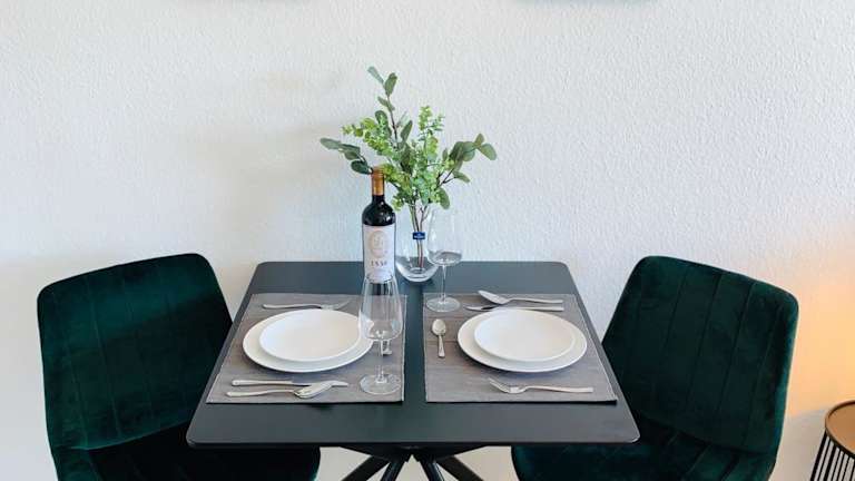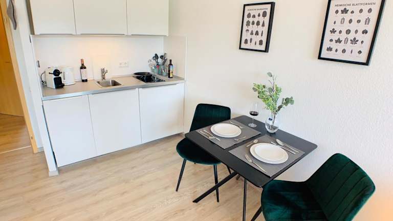 In der voll ausgestatteten Küche des Apartments können Sie Ihre eigenen Mahlzeiten zubereiten. Alternativ finden Sie in der Umgebung verschiedene Restaurants und Cafés, in denen Sie regionale Spezialitäten genießen können.