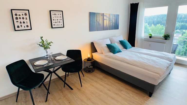 Verbringen Sie einen komfortablen Aufenthalt in dem Apartment in Bad Elster mit Netflix. Genießen Sie den herrlichen Bergblick, den direkten Zugang zu den Skipisten und das kostenfreie WLAN. Das Apartment bietet eine voll ausgestattete Küche, ein eigenes Bad und einen Balkon mit Stadtblick. Entdecken Sie die Umgebung beim Wandern, Skifahren oder Radfahren. Das König Albert Theater und die Musikhalle Markneukirchen sind ebenfalls in der Nähe.