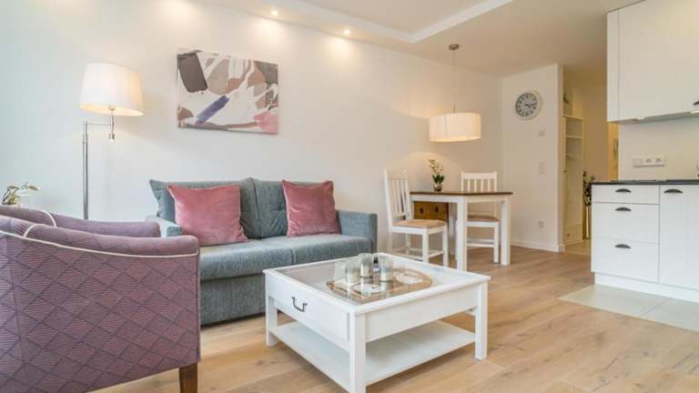 Kompass 3-10 bietet Übernachtungsmöglichkeiten in Form einer Ferienwohnung, die über einen Balkon und kostenfreies WLAN verfügt. Die Unterkunft hat eine Nichtraucherpolitik, und in allen Bereichen sind Rauchen sowie Feiern untersagt. Es stehen moderne Annehmlichkeiten zur Verfügung, darunter ein Aufzug und Heizung.