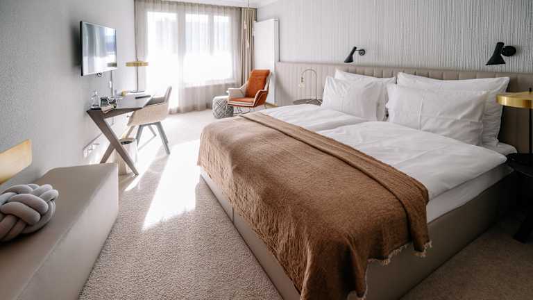 Die 80 Zimmer des Kongress Hotels Davos sind komfortabel und modern eingerichtet. Sie verfügen über einen Smart-TV, eine Minibar, einen Sitzbereich und ein eigenes Badezimmer. Die meisten Zimmer bieten zudem einen Balkon mit herrlichem Blick auf die Alpen. Kostenfreies WLAN ist in allen Bereichen des Hotels verfügbar.