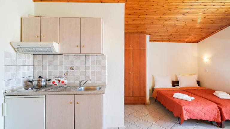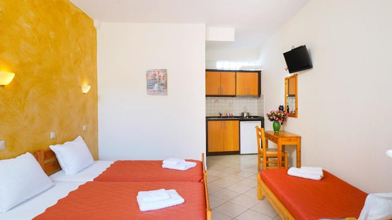 Die klimatisierten Studios im Konstantinos Beach 2 bieten Ihnen ein komfortables und gemütliches Zuhause während Ihres Aufenthalts. Jedes Studio verfügt über kostenfreies WLAN und einen Balkon mit seitlichem Meerblick, wo Sie die frische Meeresluft genießen können. Die Studios sind mit einer Küchenzeile ausgestattet, die Ihnen die Möglichkeit gibt, Ihre eigenen Mahlzeiten zuzubereiten. Zur Ausstattung gehören Kochplatten, ein Kühlschrank und Küchenutensilien. Jedes Studio verfügt auch über ein eigenes Bad mit einem Haartrockner und ein TV für Ihre Unterhaltung.