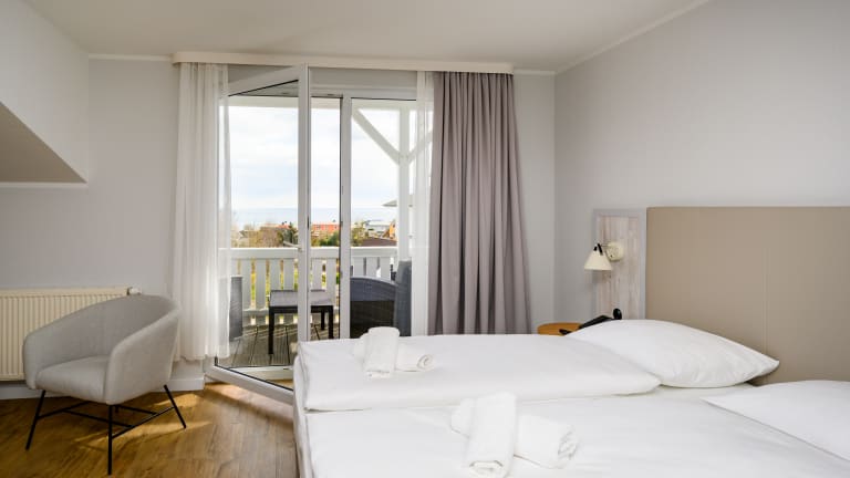 Frisch renoviert im Frühjahr 2022, erwartet Sie das Hotel mit 55 Zimmern und 4 Appartements teilweise mit Meerblick, Balkon oder Terrasse und kostenfreiem WLAN.