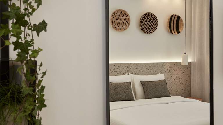 Das Kosmoplaz Beach Hotel befindet sich in ausgezeichneter Lage direkt am Strand von Platis Gialos, der mit der Blauen Flagge ausgezeichnet ist. Der Flughafen ist etwa 3 km entfernt und die Stadt Mykonos sowie der Hafen sind in ca. 4 km erreichbar. Der Sandstrand von Platis Gialos ist nur ca. 20 m vom Hotel entfernt und bietet Liegen und Sonnenschirme gegen Gebühr.