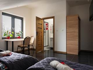 Die Zimmer in der Unterkunft KR Pokoje sind mit einem Schreibtisch, einem Flachbild-TV, einem eigenen Badezimmer, Bettwäsche und Handtüchern ausgestattet. Zudem verfügen die Gästezimmer über einen Kleiderschrank.